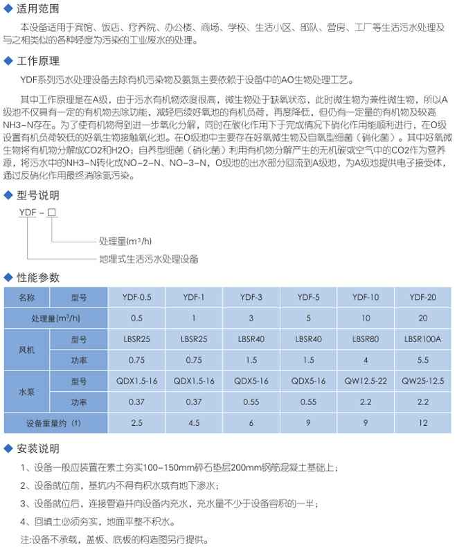 YDF型地埋式生活污水处理设备